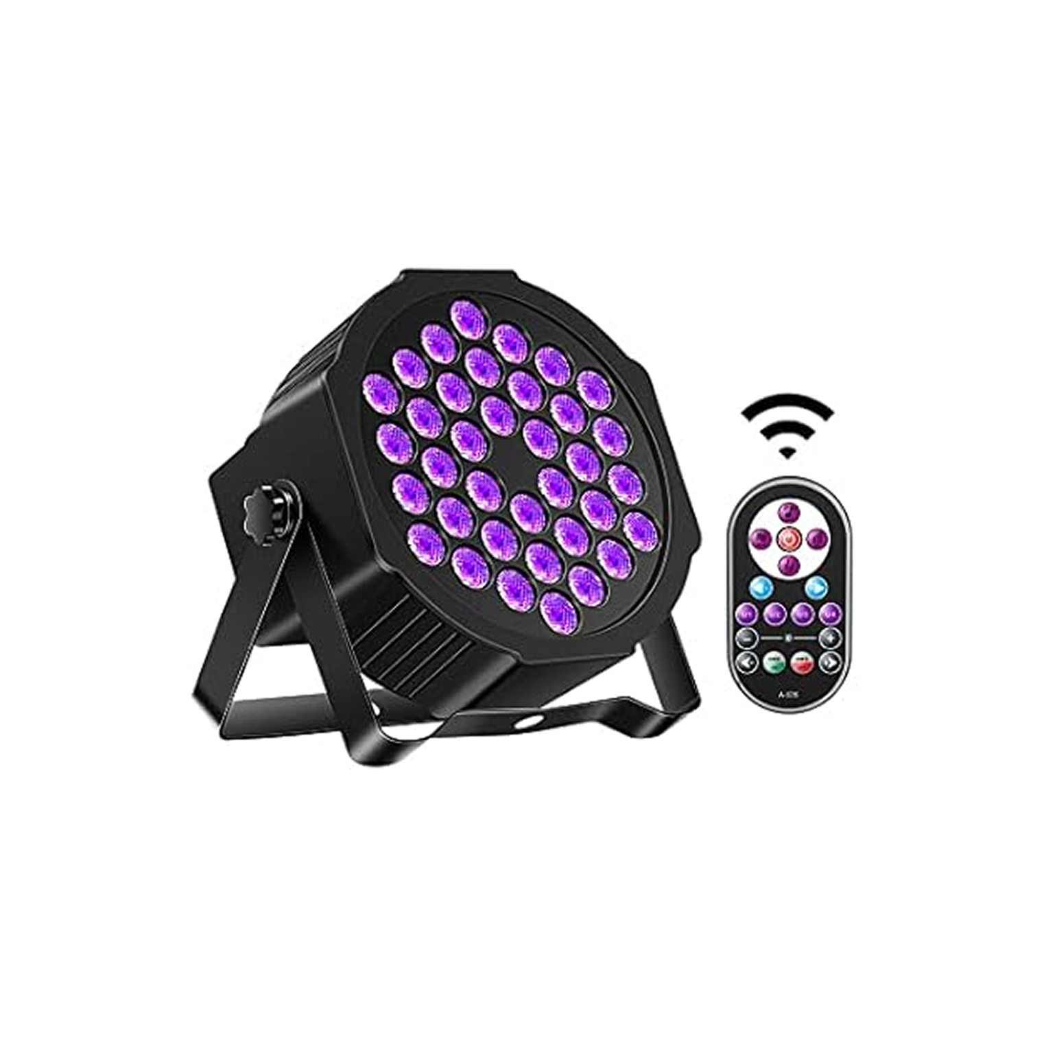 High-powered 72W LED UV black light projector that creates dramatic ultraviolet effects. Perfect for glow parties, highlighting fluorescent decorations, and creating unique atmospheric lighting for special events and themed celebrations. Floor or truss mountable.
